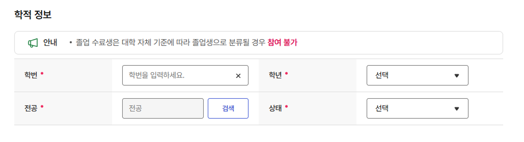 - 학번, 학년, 전공, 상태를 필수 기재해주세요