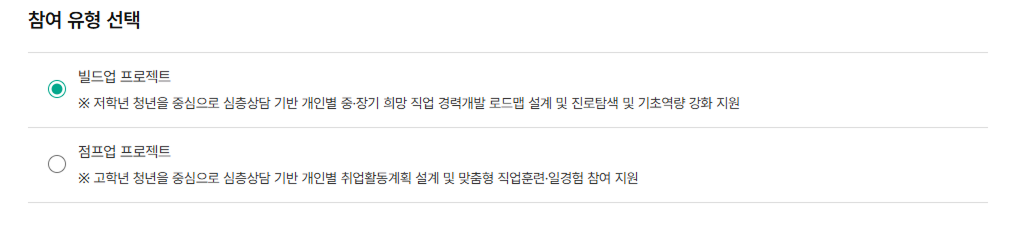 - 참여 유형정보를 본인의 상황에 맞게 신청해주세요