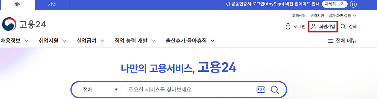 고용24 가입절차