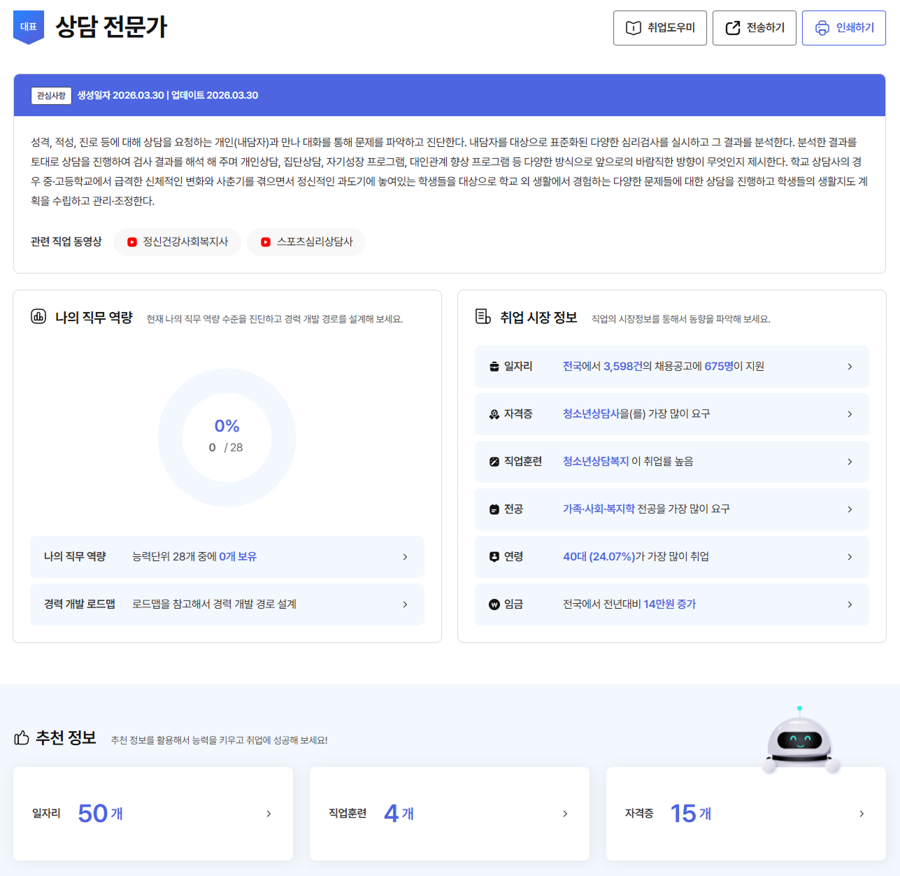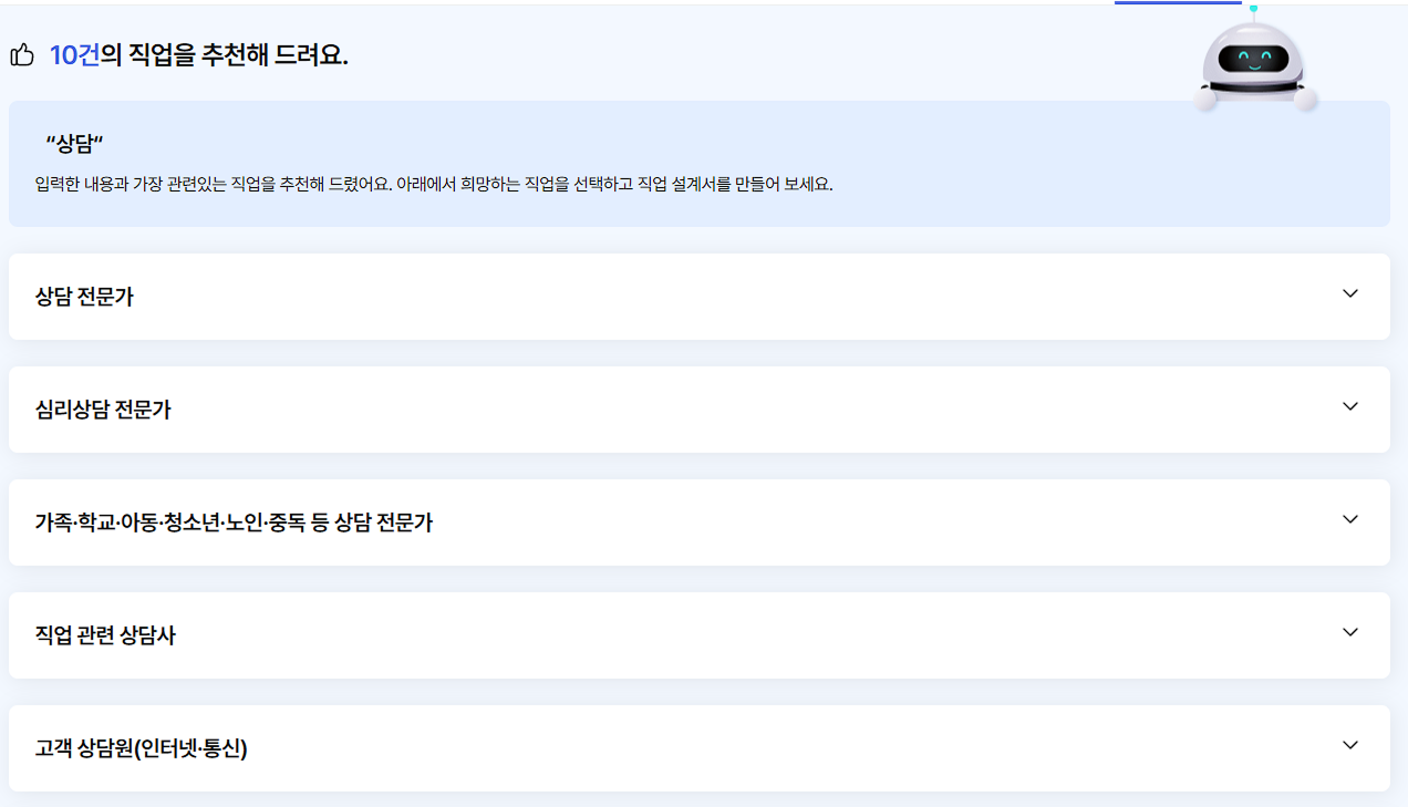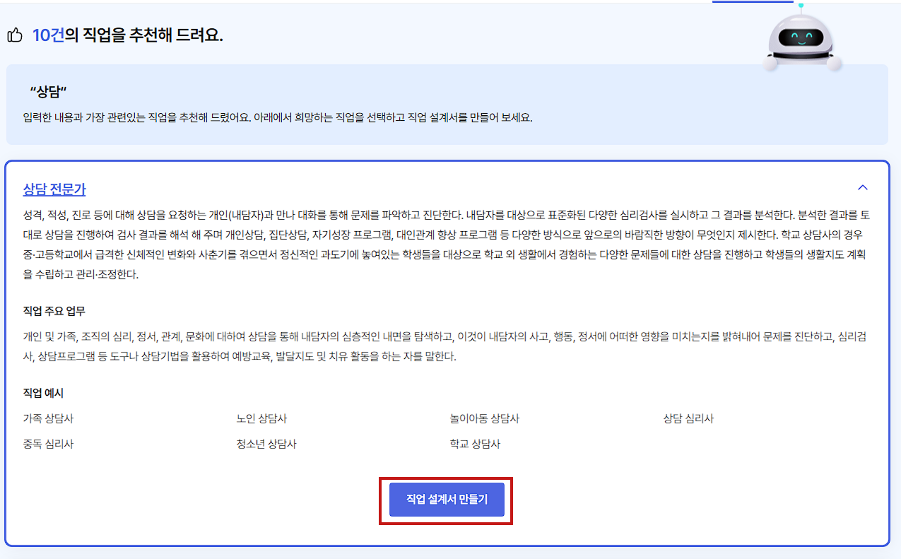 - 추천 받은 직업 중 한 가지를 선택합니다