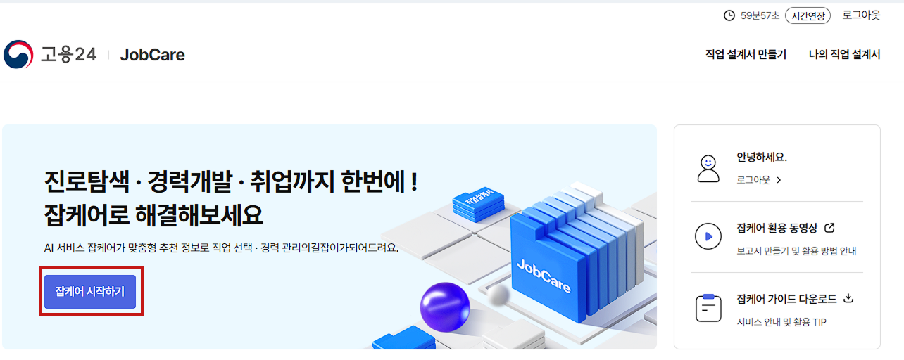 - 잡케어 메인화면에서 '잡케어 시작하기' 버튼을 클릭합니다
