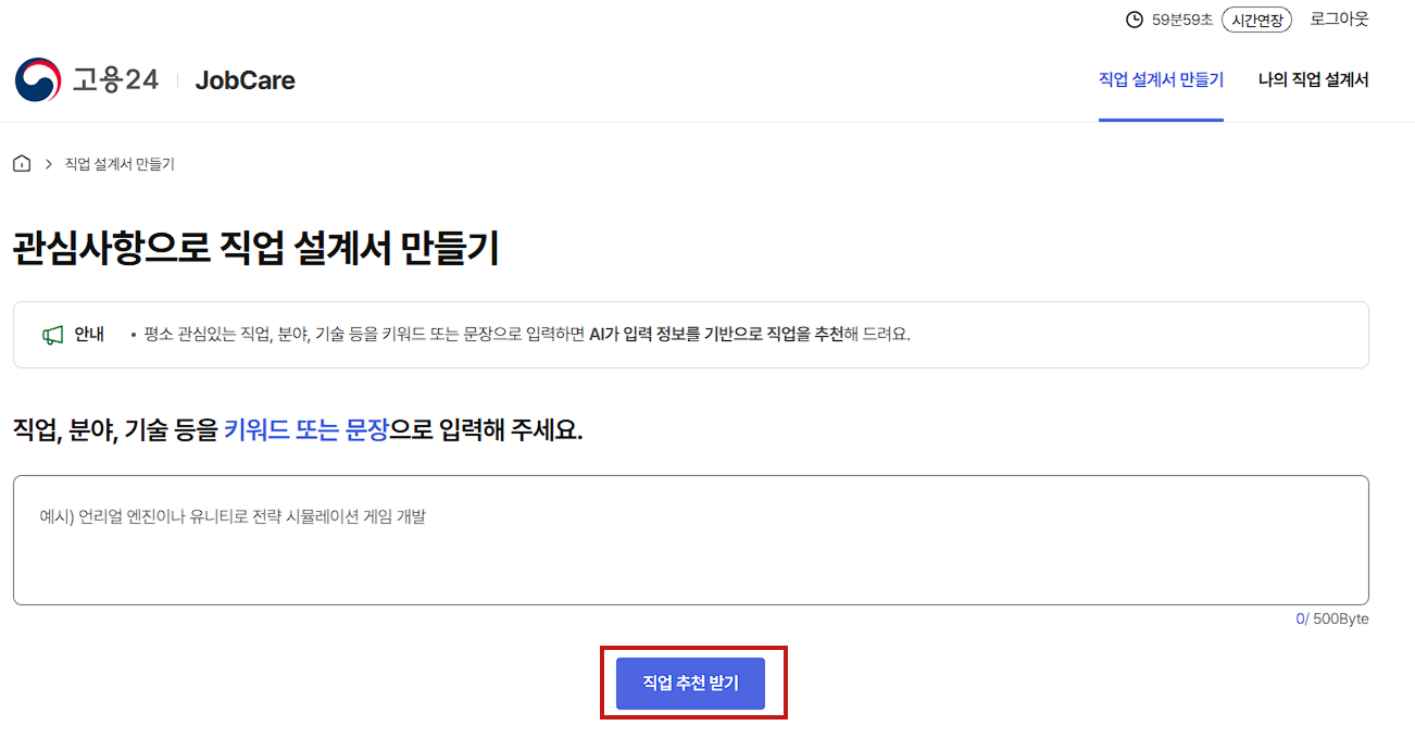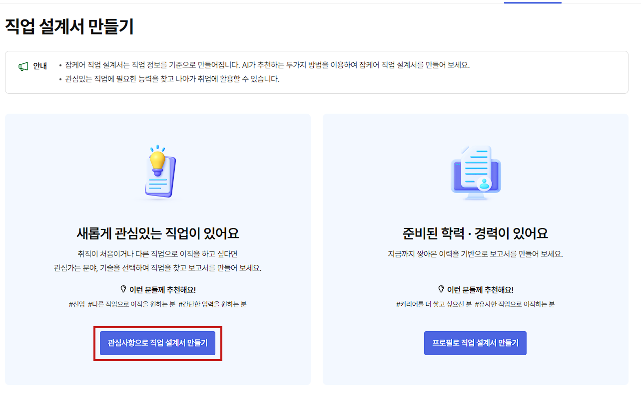 - '관심사항 직업 설계서 만들기' 버튼을 클릭합니다