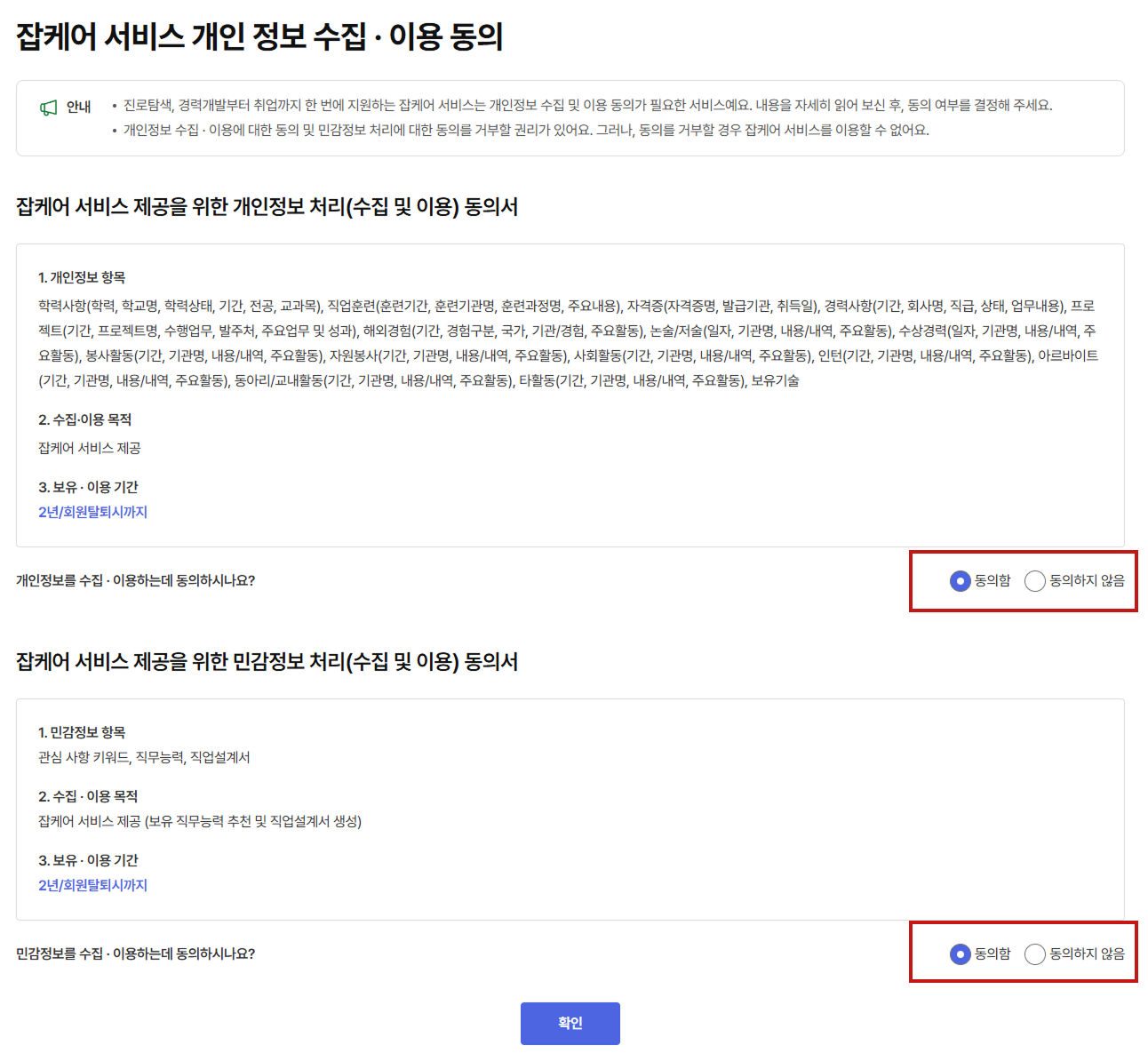 - 개인정보 수집 이용 동의를 진행합니다