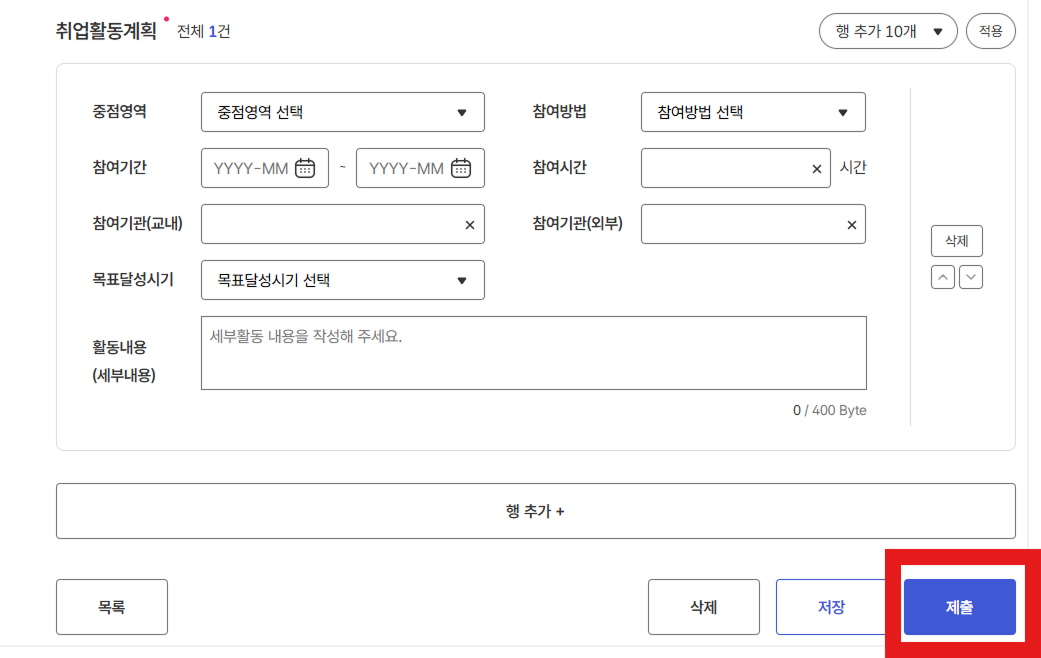 - 취업활동계획 내용을 작성한 뒤, 제출합니다